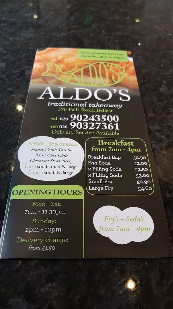 Overall, Aldos Fish & Chips offers a varied and satisfying menu that caters to both traditional chip shop lovers and those seeking something a bit more indulgent. The selection of meal deals like the Chicken Goujon Meal, The Dynamite Burger Meal, and Fish Supper Meal provides convenient, hearty options, while the Variety Family Box Meal and Chicken Family Box Meal are ideal for sharing. Burger enthusiasts can enjoy choices such as the Cheese Burger, Mexican Burger, and the standout The Dynamite Beef Burger, alongside a strong range of chicken options like the Southern Fried Chicken Fillet and Spicy Chicken Fillet. Classic favourites shine through in the fish section with Fresh Cod and Fish Special, complemented perfectly by traditional sides like Curry Chip and Gravy Chip. The menu is further rounded out with wraps like The Texan, hot dogs such as the Bigfoot Hot Dog With Onions & Sauce, and family-friendly picks including the Nugget Kids Meal. With indulgent extras like Oreo Milkshake and Kinder Milkshake, the overall offering feels complete, making it a well-balanced menu that delivers both comfort and variety.